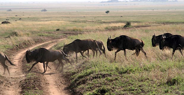 Ganz beeindruckend waren auch die tausenden, tausenden Gnus, die durch die Serengeti zogen und immer wieder genau vor unserem Auto die Straße überquerten.