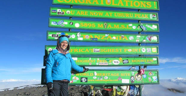 Zu zweit versuchten wir nun ein wenig zur Ruhe zu kommen und ein bis zwei Stunden zu schlafen, was uns jedoch nach all der Aufregung schwer viel. Um 23:00 Uhr wurden wir dann geweckt. Wir packten uns warm ein, tranken Tee und versuchten ein paar Kekse zu essen, was mir nicht leicht fiel. Kurz vor Mitternacht starten wir dann „Pole Pole“ unsere wohl schwerste und anstrengendste Etappe der ganzen Tour. Schritt für Schritt folgten wir den Stirnlampen die man bis in den Himmel leuchten sah und oft nicht von den hell leuchtenden Sternen auseinander halten konnte. Immer wieder hielten wir an um etwas zu trinken oder ein bisschen Energie, in Form von Müsliriegel, zu tanken. Die Strecke war mühsam und man spürte nun bei jedem Schritt die Höhe. Ich war kurz davor aufzugeben als sich am Himmel ein roter Streifen bildete. Die aufgehende Sonne gab mir noch einmal Kraft. Durchgefroren aber glücklich kam ich am Stella Point an. Zufrieden tranken wir unseren heißen, sehr süßen Tee. Nach dem wir erfuhren, dass es auch unserem dritten Mann in der Runde besser ging und er am Mweka Camp angelangt war bewältigten wir unser letztes Stück zum Uhuru Peak (5895m). Die Sonne wärmte mich langsam wieder auf und ich genoss es an den strahlenden Gletscher vorbei zu laufen und schon von weitem das grün leuchtende Schild des Uhuru Peaks zu sehen.