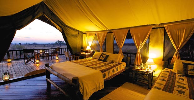 Unsere schönen, großen Zelte im Stanley’s Kopje Camp stehen auf einem Hügel mit großartiger Aussicht über die Ebene. In der Nacht hören wir die beeindruckenden Geräusche der afrikanischen Nacht, inklusive Löwengebrüll!