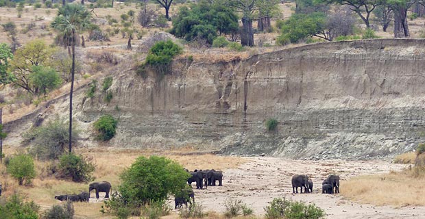Doch zwischen Juli und Oktober, wenn der letzte Regen schon lange zurückliegt und die Wasserreserven des Parks immer kleiner werden, geschieht etwas Sonderbares: Sobald sich der Tag dem Ende neigt und es kühler wird, wandern Elefantenfamilien zum Tarangire River und versammeln sich im ausgetrockneten Flussbett, um – ja, was genau tun sie da? Um Sand zu trinken?